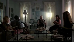 During dinner served by Spalding, the girls discuss their powers. Madison recalls the time when she killed her critical director by telekinetically unscrewing a stage light, causing it to fall and crush him. Queenie and Madison fight and Queenie reveals her Voodoo Doll powers by stabbing herself on the hand with a fork and sending the wound to Madison and threatening to slit Madison's throat, but Clairvoyant Nan calms her. Madison declares Zoe to be her new best friend since she is the "most normal" one there. She tells her they will go to a frat party later. Meanwhile, in the greenhouse, Cordelia is making potions with plants, and she is surprised by her mother Fiona's sudden appearance. Cordelia is cold to her mother, the current Supreme, for her abandonment to both her own daughter and the Coven. Meanwhile, Fiona is disappointed in Cordelia's lack of ambition since, as the daughter of the Supreme, she could have had anything she wanted if she tried. Fiona tells her that she plans to stay here and teach the girls how to survive since she thinks Cordelia is insufficient.
