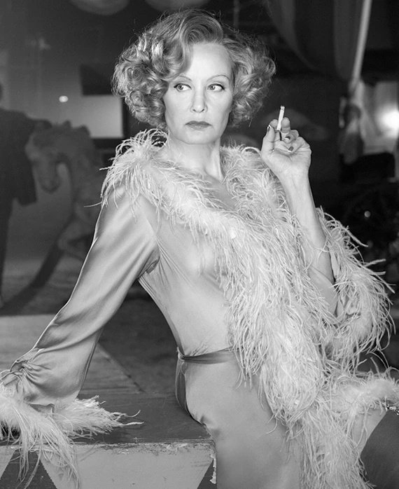Elsa is a woman with a very astute fashion sense. It's not rare to see the leader of the freaks adorned in feathers or fur, and it's likely that these flashy clothing choices are inspired by her Hollywood idols of the era. Still, Elsa's outfits have undertones of a professional, sending the message that she's a powerful force to be reckoned with. Even in casual and sleepwear, she is dressed in the most lavish fabric, generally silk. And when she's out on the town she's never caught dead without her large, personalized purse engraved with her show's devilish logo. When it comes to her golden locks, she sticks to a classic, tight-curled hairdo fitting of the time period. She often wears light makeup, unless she is performing of course. Elsa's outfits on stage are that of a completely different variety. They communicate her desire to be a true performer.