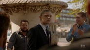 After his vicious beating Kai, wearing a suit and an endearing armbrace is interviewed by various reporters in front of city hall, as he intends to propose himself as a city councilor. The Trump supporter is quick to point the finger at those 'dangerous illegal immigrants' for his mishap and further stokes the fires of ignorance and hatred. Later, Kai just happens to show up at Ally's newly fortified house. Sensing that she's very uneasy, he does his best to augment the woman's sense of unease even more.[4]